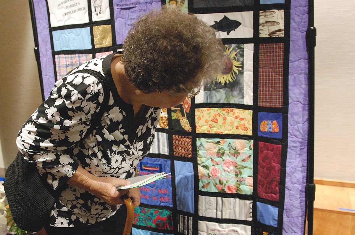 Lori Simpson wrote a few lines that captured her mother’s character, and had them embroidered on the swatch she contributed. Carolyn Hill was a prayer warrior, a giver who was involved with her church and community, she said of her mother. “At the end, she whispered to us to have faith and love, and to pass it on. She never stopped giving.”