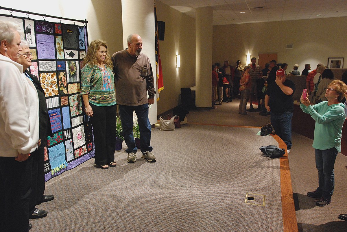 “It holds a lot of emotions and memories,” said Patricia Thompson of Smithfield. She chose a fabric with hearts to represent her mother, Retha Hudson of Smithfield, who was a quilter, too. “She’s got quilts all over this county,” she added. “I think she would have liked this one.”