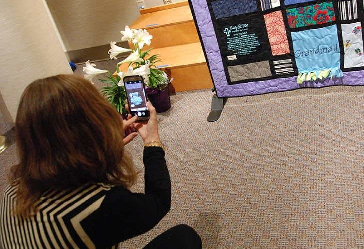 At the unveiling two Sundays ago, the Rev. Greg McClain, director of spiritual care at Johnston Health, pointed out that the squares represent the unique life of the individual, and the quilting together, the connectedness they all shared.