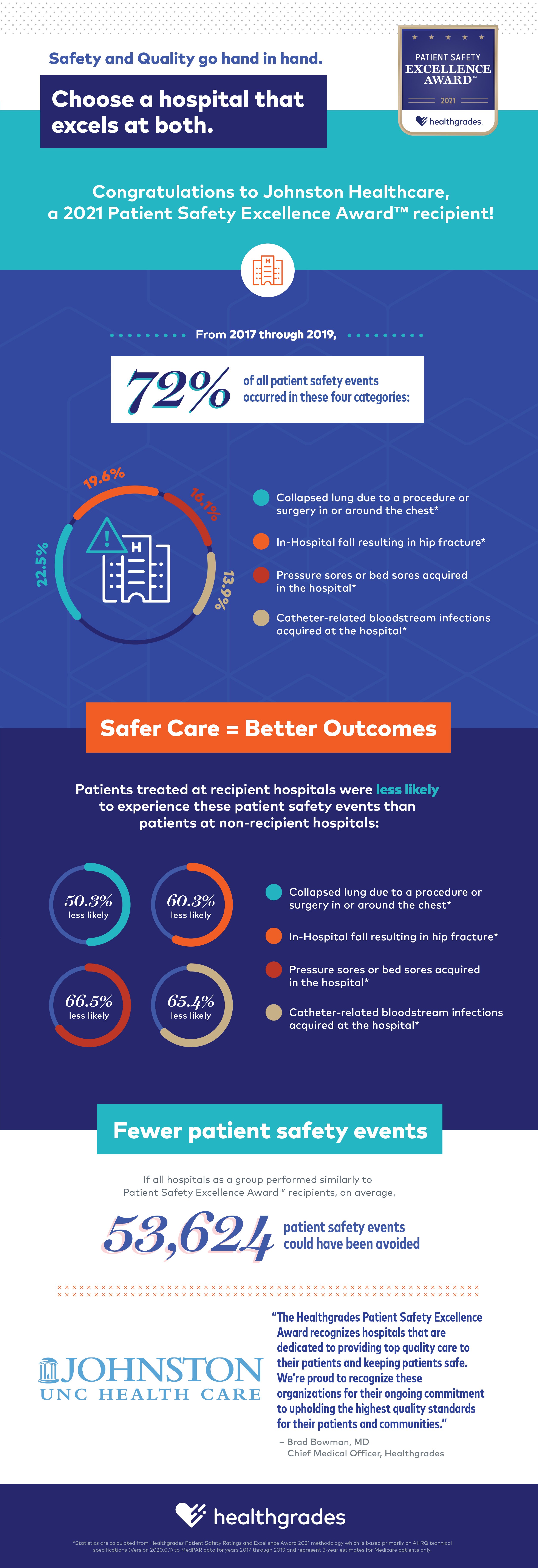 “The importance of hospital quality is now at the forefront of consumer’s minds, especially as we continue to navigate COVID-19. We congratulate the recipients of the Healthgrades 2021 Patient Safety Excellence Award for their ongoing commitment to upholding the highest quality standards for their patients and communities,” said Brad Bowman, MD, Chief Medical Officer, Healthgrades.